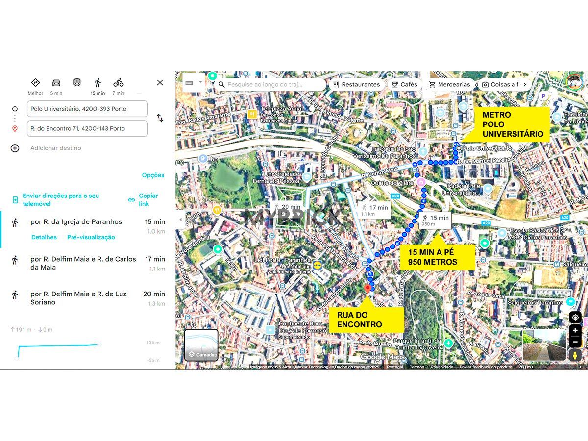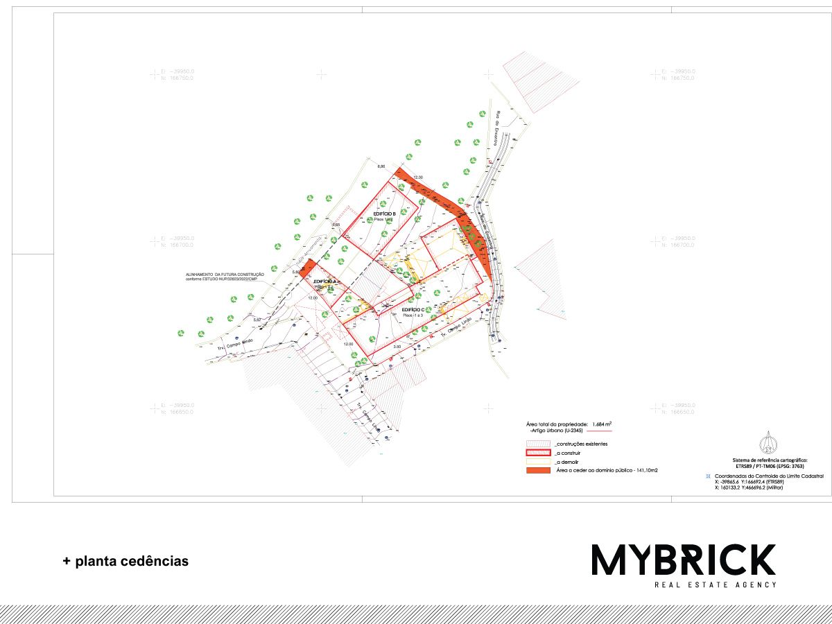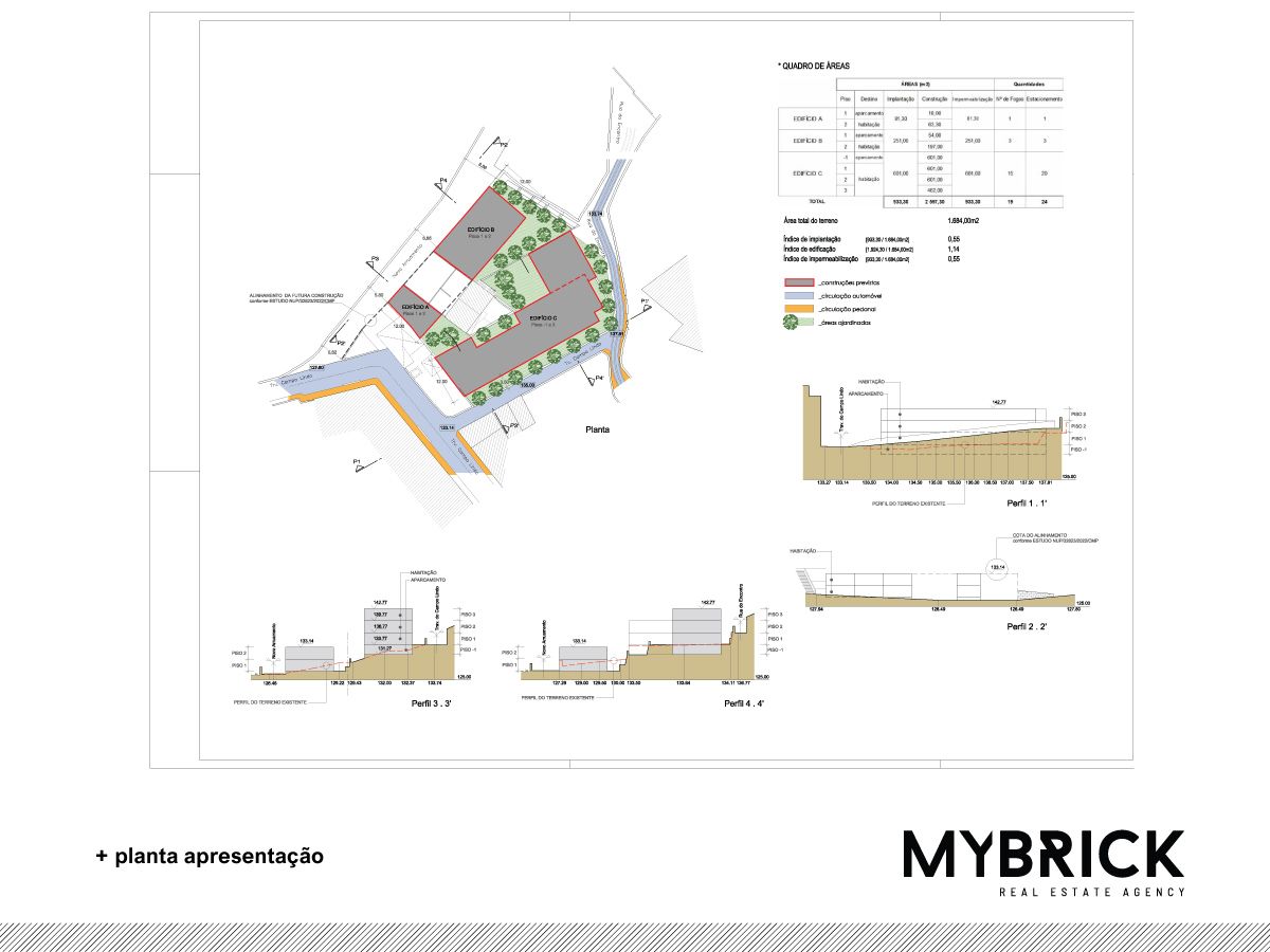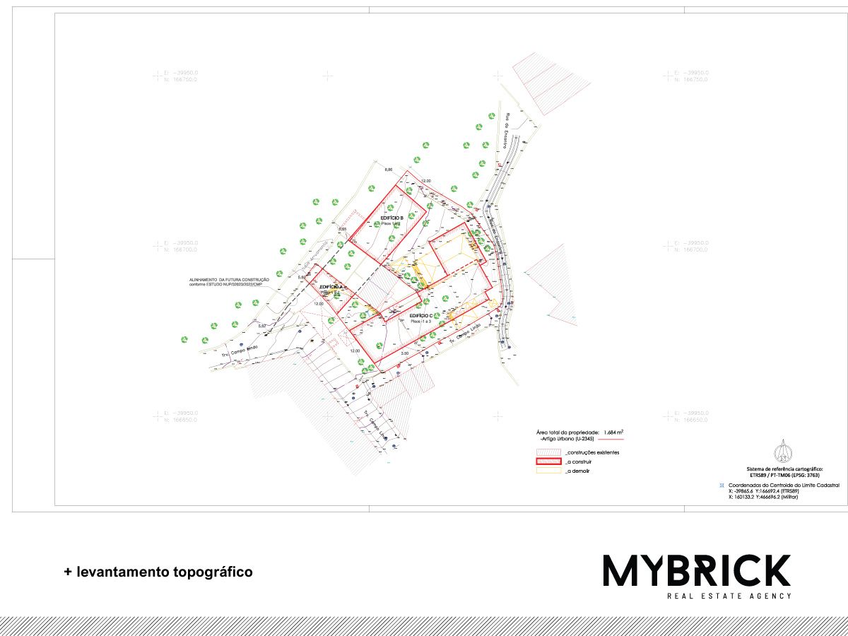 Terreno com capacidade construtiva de 2597m2 a 950m da estação de metro do Polo Universitário do Porto. O presente pedido de informação prévia, em fase final de aprovação, refere-se à viabilidade de construção de 3 edifícios habitacionais e aparcamentos privados num terreno compreendido entre a Travessa do Campo Lindo, Rua do Encontro e o arruamento de ligação entre a Travessa do Campo Lindo e a Rua do Encontro, tendo o terreno uma área total de 1.684,00m2. O estudo arquitetónico efetuado contabiliza 19 apartamentos e 24 lugares de garagem. Preço m2 de Construção: 531€/m2 EDIFÍCIO A: Nº de pisos abaixo da cota de soleira - 0 Nº de pisos acima da cota de soleira - 2 Habitação: 63,30m2 Aparcamento: 18m2 EDIFÍCIO B: Nº de pisos abaixo da cota de soleira - 0 Nº de pisos acima da cota de soleira - 2 Habitação: 197m2 Aparcamento: 54m2 EDIFÍCIO C: Nº de pisos abaixo da cota de soleira - 1 Nº de pisos acima da cota de soleira - 3 Habitação: 1664m2 Aparcamento: 601m2 NOTA: Estando o processo de Pedido de Informação Prévia a decorrer poderão haver alterações aos projeto. Para qualquer esclarecimento adicional ou visita estamos inteiramente à sua disposição MY BRICK _ REAL ESTATE AGENCY